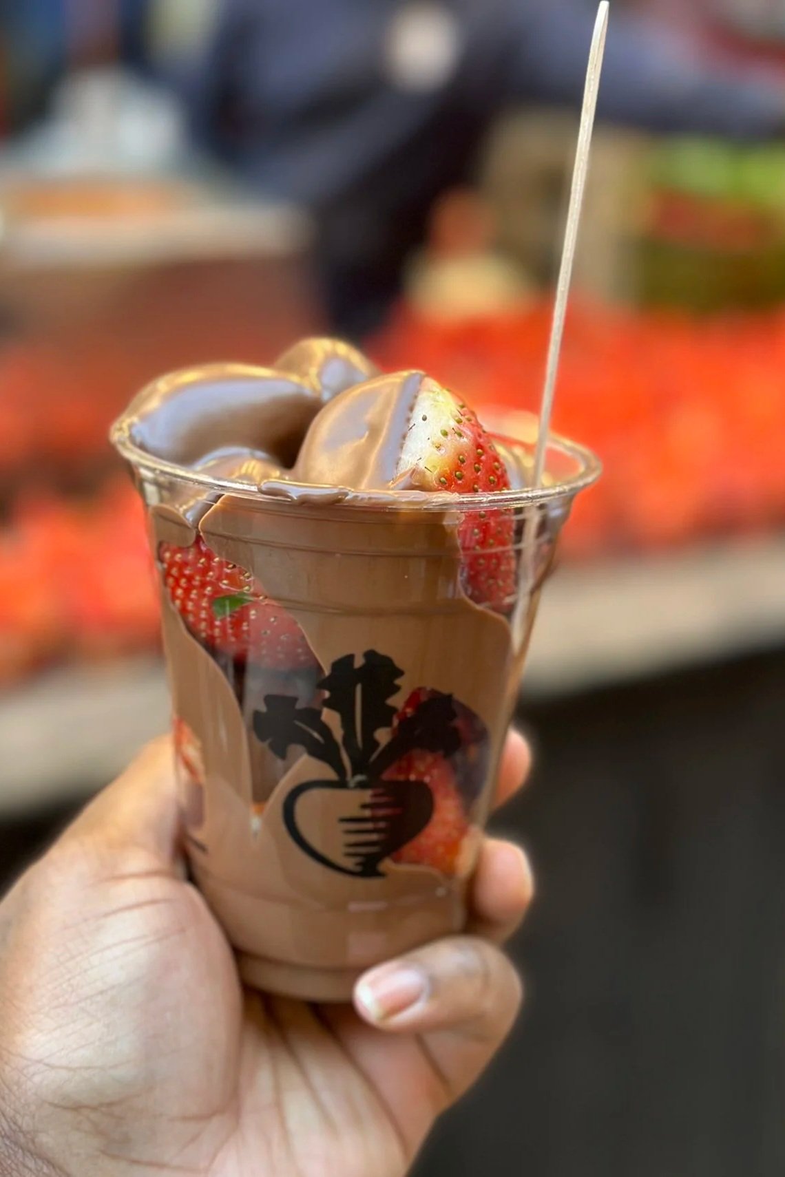 On the next day, Sunday, I had a full night’s rest and finally felt acquainted with London time. I didn’t spend enough time at Borough Market, so I had to go back to try everything that I didn’t try the day before. I wanted to go as soon as they open so I can avoid the crowds. On Sundays the market opens at 10 am. I arrived ~30 minutes after they opened and there were several people there, but it was not as crowded as the day before. On Saturday, I really wanted to try The Bath Dairy which serves the viral mac and cheese at Borough Market. When I arrived, The Bath Dairy was still in the process of cooking the mac and cheese, and asked me to come back in 10 minutes. I ended up going to Turnips to try the chocolate covered strawberries. There was no one in line, so I was in and out. You can purchase a cup of fresh strawberries, chocolate covered strawberries or fresh squeezed juices at Turnip. The chocolate strawberries are tasty, and reminded me of the chocolage covered strawberries from Godiva in local shopping malls. The chocolate hardens fast, so by the time I made it back outside in the cold, the chocolate had hardened and the strawberries were cold, but it was a solid order. Clearly this isn’t something that the average Londoner is ordering daily, but as a tourist this is a treat and okay to fall in to the hype.