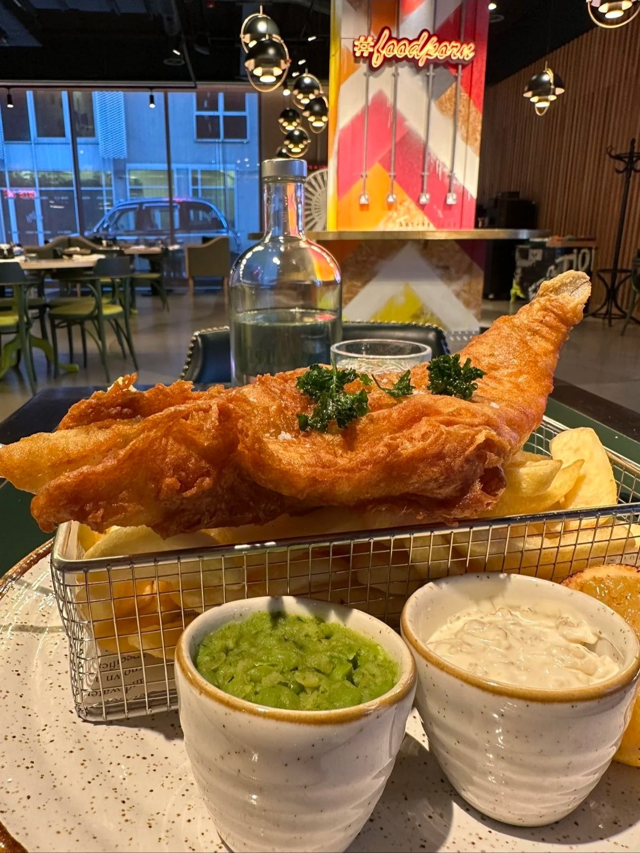 On Monday, I think I was tired of being out in the cold, I was tired from being out late the night before, I was tired of walking and taking public transit, so I stayed inside the hotel all day. I had to work and did everything from my hotel room and their lobby. I had a late lunch as my first meal of the day at nhow’s restaurant, Guilty Bar. I had another English staple of fish and chips served with mushy peas. The fish and chips were good once I added a generous amount of salt and pepper then dipped it in tartar sauce and ketchup. Fish and chips are found all throughout London, and I feel like it’s a burger in the U.S. It’s on every corner and hard to mess up since it’s a classic and basic. Since I wasn’t over the moon with my sticky toffee pudding at No. Fifty the night before, I ordered a sticky toffee pudding at Guilty Bar. Again, I wasn’t blown away, but it sufficed.